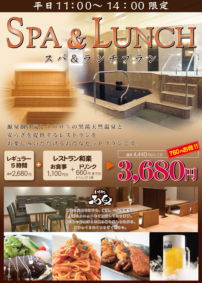 レギュラーコース+岩盤浴(1時間)がお得にお楽しみいただける火曜日限定のコースです。