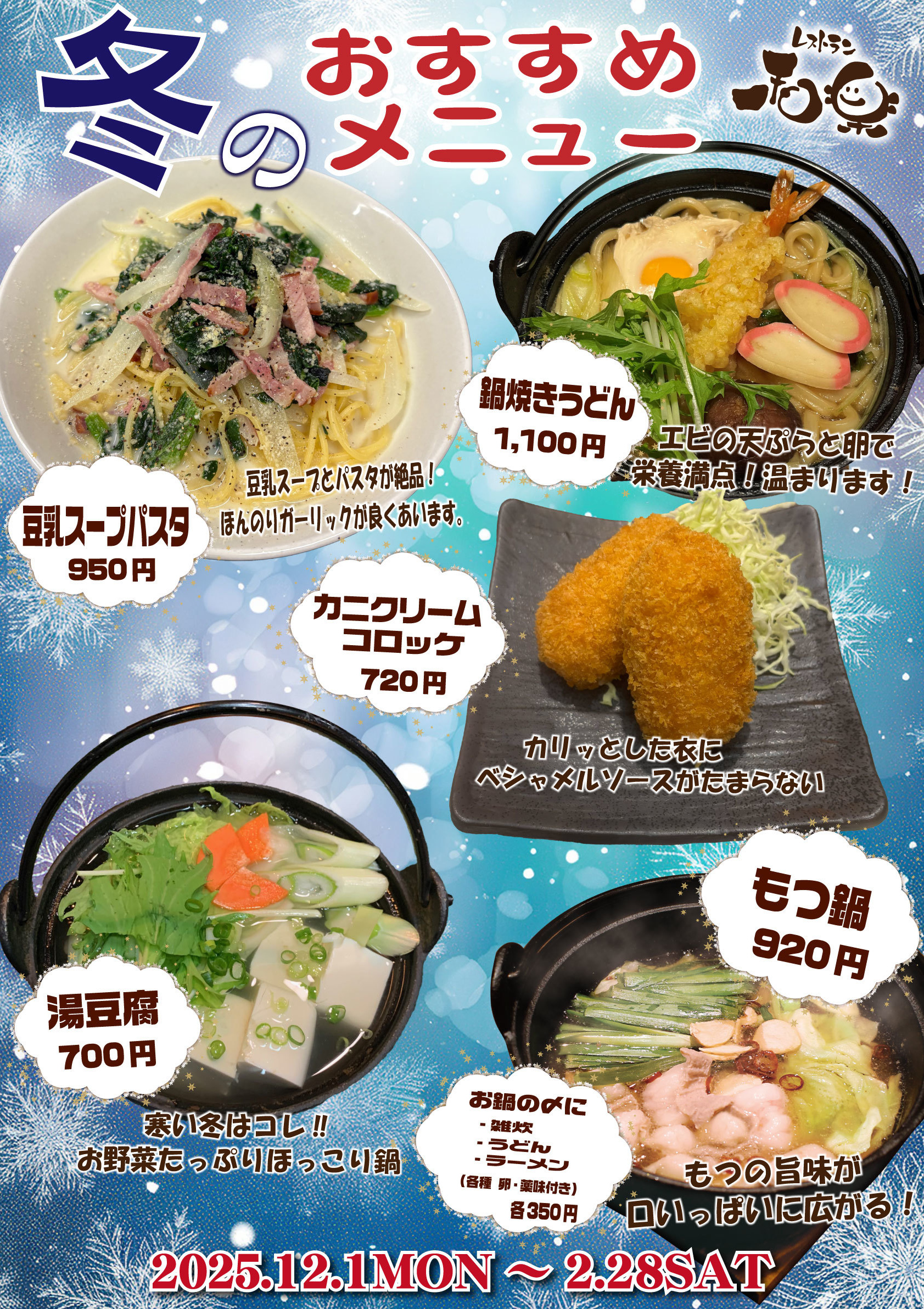 和洋の定食をはじめ、麺類、一品料理等の多彩なメニューで、