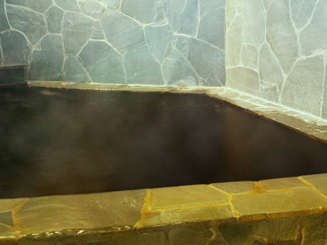 お客様がまず当館の温泉を見てビックリされるのが、『真っ黒な温泉』。