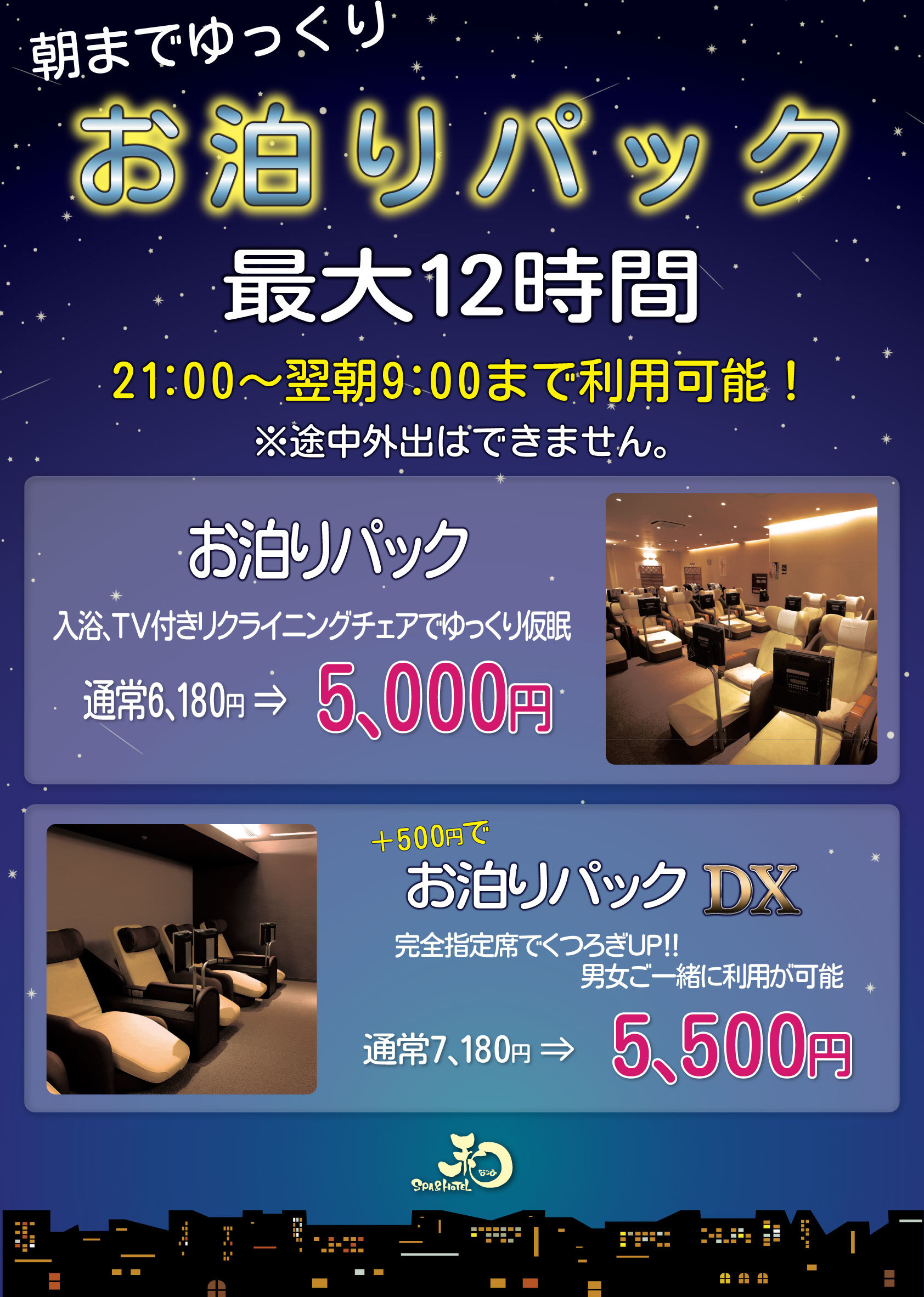 お泊りパック 5,000円・お泊りパックDX5,500円