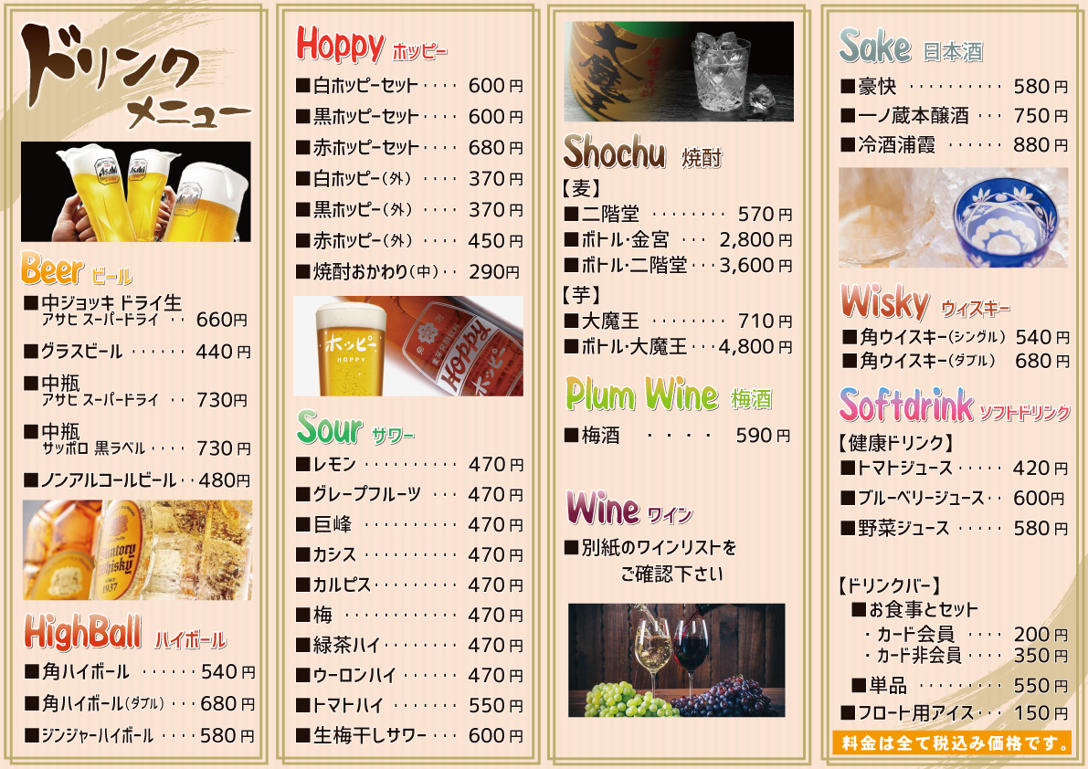おいしいお食事とお飲み物を楽しみながら、ごゆっくりおくつろぎください。